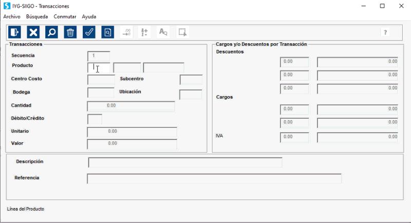 Datos de transacción: agrega los productos y/o servicios, que están ingresando a la empresa, si son productos, en cuál bodega se van a almacenar, el número de unidades adquiridas y el valor total de las unidades; la captura que se podrá ingresar de forma independiente, la línea, grupo y código del producto, también la puedes hacer además por producto, por cuenta, por referencia o por código de barras, utilizando la tecla F7.