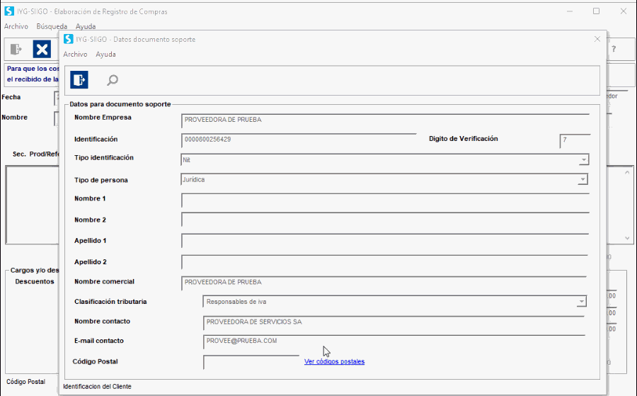 Importante: el sistema revisa la información del tercero y si no tiene el código postal o no está completo, te genera una ventana solicitando que lo ingreses.