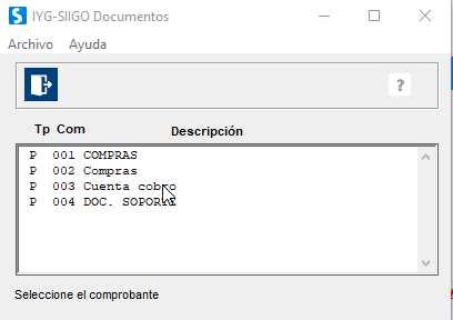 2. Seleccionas el tipo de documento de compra a elaborar:
